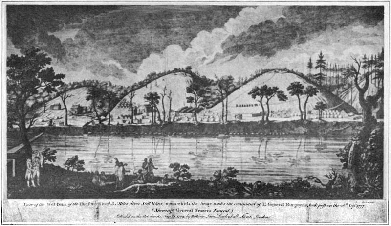 View of the West Bank of the Hudson’s River 3 Miles above Still Water, upon which the Army under the command of Lt. General Burgoyne, took post on 20th. Sepr 1777 (Shewing General Frazer’s Funeral.)