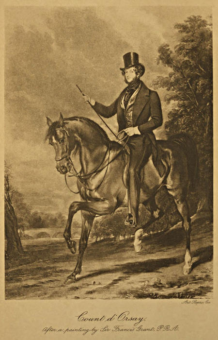 [39] An amazing version of D’Orsay’s death has recently been made public; namely, that in addition to the disease of the spine, the Count suffered also from a carbuncle, which “was a euphemism for a bullet aimed at the Emperor as they were walking together in the gardens of the Elysée.”