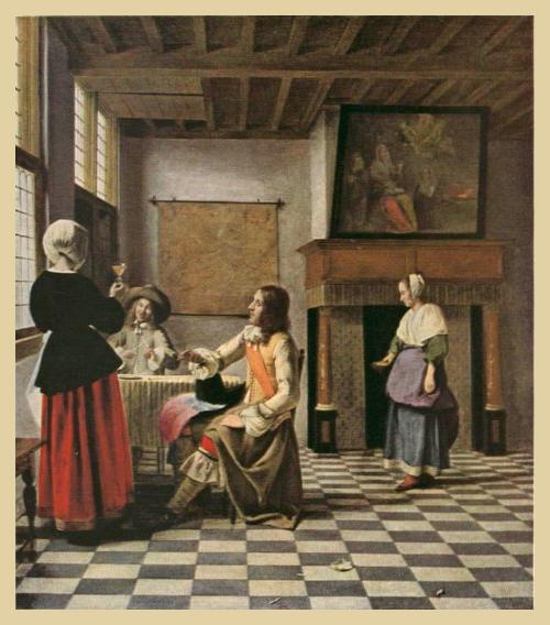 Il serait superflu d’y chercher une pointe quelconque d’idéalisme ou simplement une pensée de morale. Telle n’a jamais été la préoccupation de Peter de Hooch. Dans ses intérieurs, dans ses scènes d’auberge, dans tous les tableaux en un mot où il a peint la vie hollandaise, il n’a cherché ni à instruire, ni à faire penser, encore moins à moraliser.