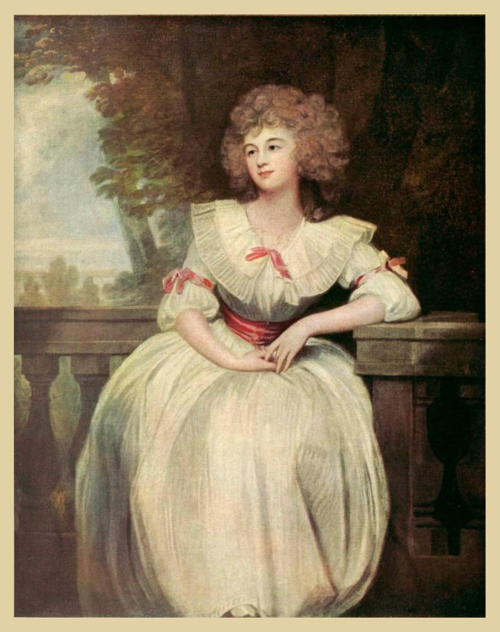Tel est le cas pour le tableau reproduit ici. Ces trois Grâces vêtues à la dernière mode londonienne du XVIIIe siècle n’ont rien de l’esthétique usitée dans ce genre de sujets; ce sont de véritables Anglaises que nul trait n’apparente aux classiques beautés que peintres et sculpteurs ont l’habitude de nous montrer. Blondes comme il sied à des filles du Nord, élancées, fines, elles ont cette fraîcheur délicate et cette grâce aristocratique dont l’Angleterre possède de si nombreux et si charmants modèles. Ces trois Grâces sont trois sœurs, filles de Sir W. Montgomery: celle de gauche, qui est agenouillée et tend des fleurs à ses compagnes, est Mrs. Beresford; celle du milieu, dont le genou ployé s’appuie sur le soubassement de la stèle, est Mrs. Gardiner, mère de Lord Blessington; enfin, nous reconnaissons la marquise Townsend dans la superbe jeune femme qui, dans ses mains levées, déploie la guirlande odorante et fleurie destinée à l’Hymen.