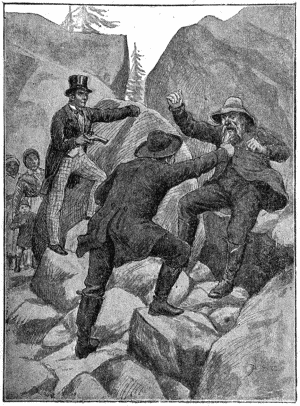 Den fremmede var en liden bredvoksen kar, med grove ansigtsdrag og et pralende væsen. For at se fin ud havde han pyntet sig med en spraglet vest af alle mulige slags farver og med et blaat, gulprikket halstørklæ, som var bundet i en stor sløife. Paa de store grove hænderne blinked en mængde[2] ringer, og et tykt guldkjede med et helt knippe af forskjelligfarvede signeter hang og dingled paa vesten hans.