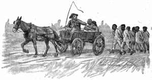Og saa fortalte han hvorledes han dagen før var blit bundet til et træ og pisket, bare fordi han havde tilrettevist sin herres søn, som havde moret sig med at bruge svepen paa en stakkars udslæpt hest.
