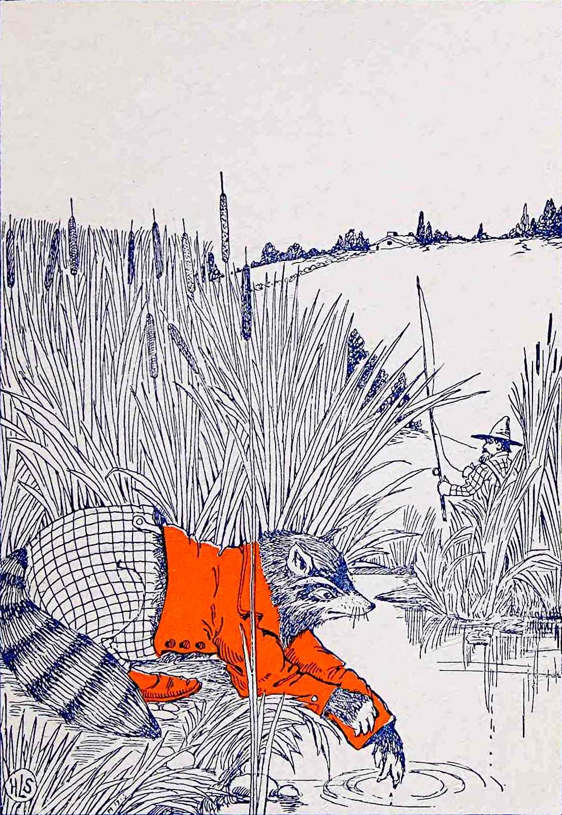Now, Fatty was hiding behind some tall rushes, and his sharp little eyes were looking all about him, and his nose was twitching as he sniffed the air. He wished he might find a frog. But not one frog appeared. Fatty began to think that some other coon must have visited the creek just before him and caught them all. And then he forgot all about frogs.