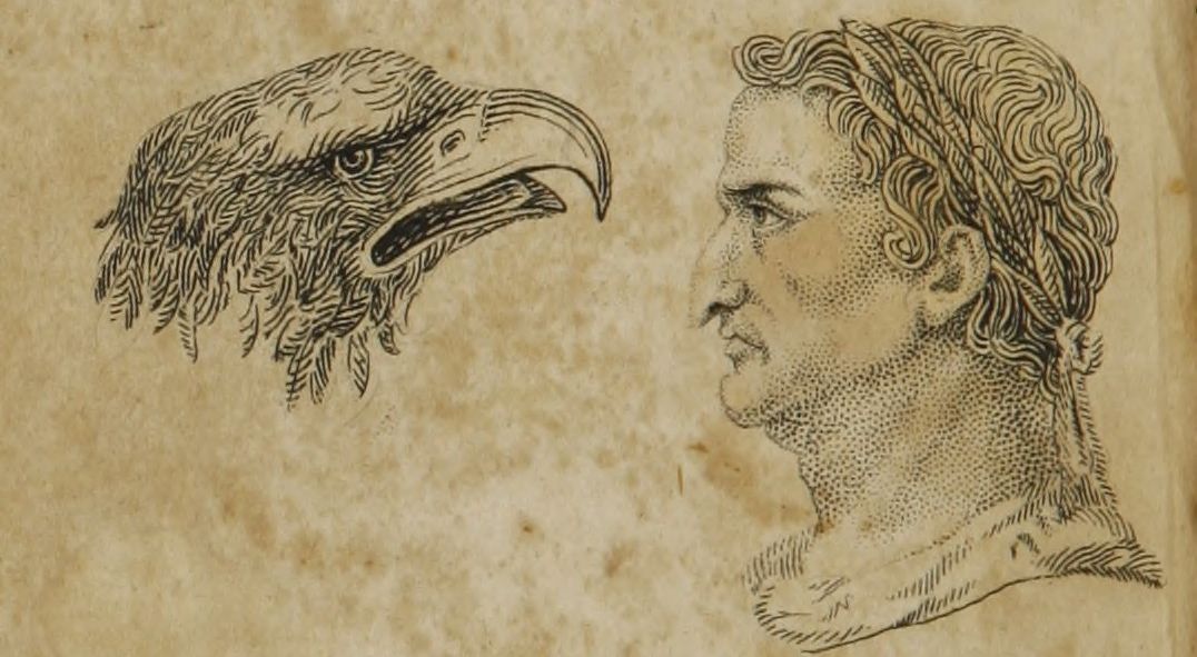 We have here represented the head of the eagle, whose curved bill can be compared to the nose of Sergius Galba, being both of the same shape.{115}