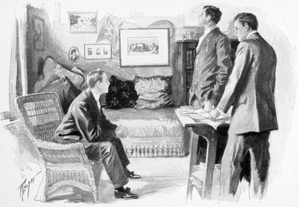 “Thirty-six?” The other considered the question with a broad smile. Then, instead of answering, he turned toward the room. “Say, fellows, here’s a new one. Come and have a look. It’ll do you no end of good.”