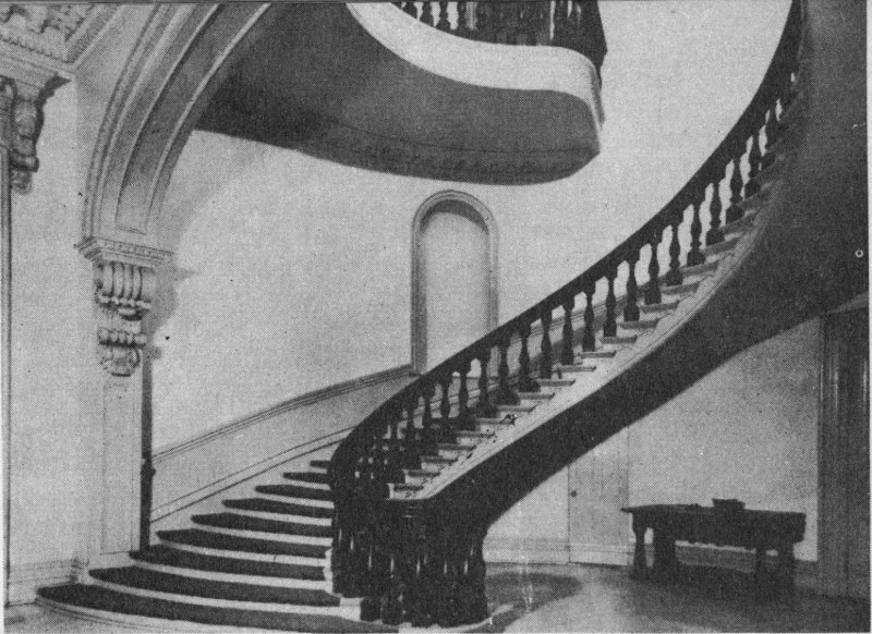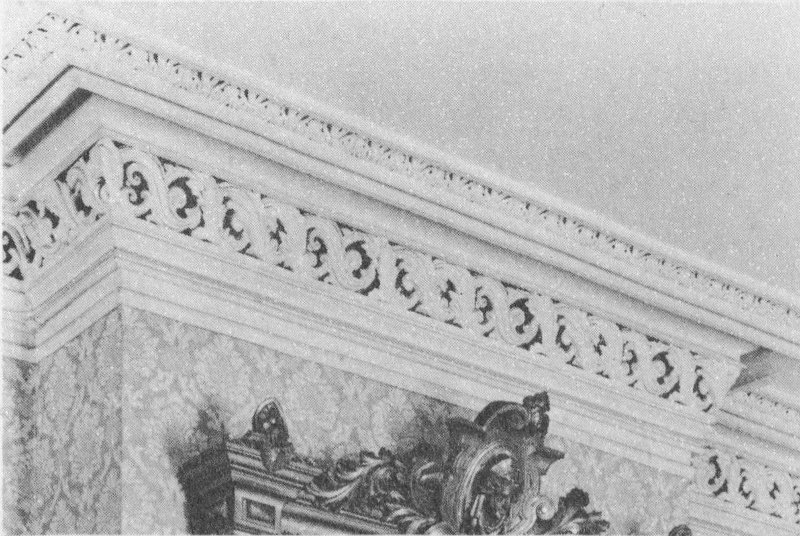 Around the turn of the century other changes had been made in a determined effort to wipe out every vestige of the neo-classic. Deep red brocade was applied to the walls, and in one room the ceiling was painted red. All woodwork was painted a gloomy brown with imitation wood grain, while simulated wall panelling was used to change the character of other rooms.