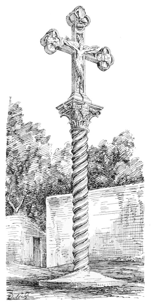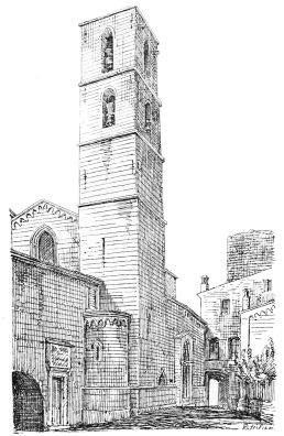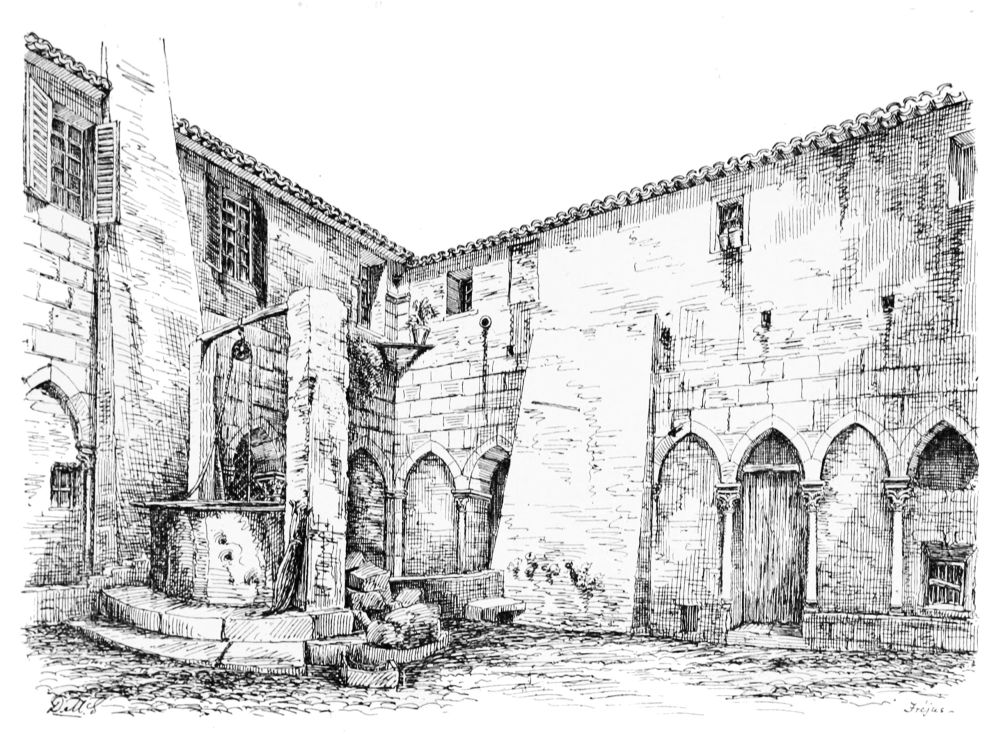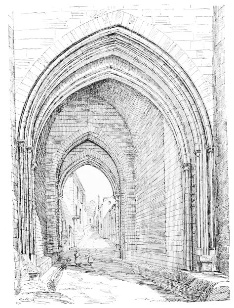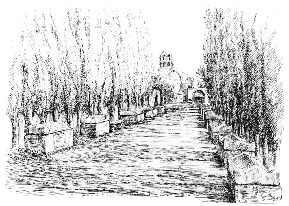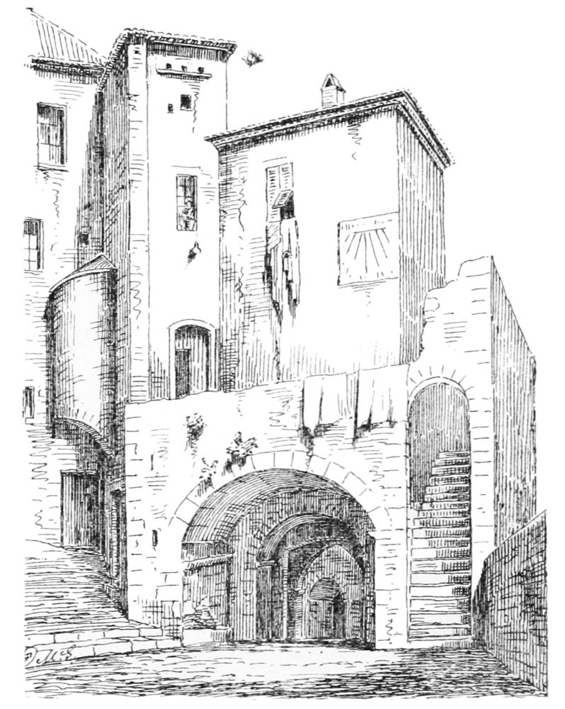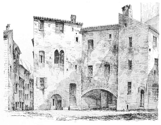 At Avignon the change of aspect is even more complete. “On arriving at Avignon,” says Prosper Mérimée, “it appeared to me that I had left France behind. Landing from the steamboat I had not been prepared by a gradual transition for the novelty of the spectacle which presented itself; the language, the costumes, the aspect of the{4} country, everything appears strange to one coming from the centre of France. I believed myself in the middle of a Spanish town. The crenellated walls, the towers furnished with machicolations, the country covered with olives and plants of a tropical vegetation, recalled Valencia, &c.”