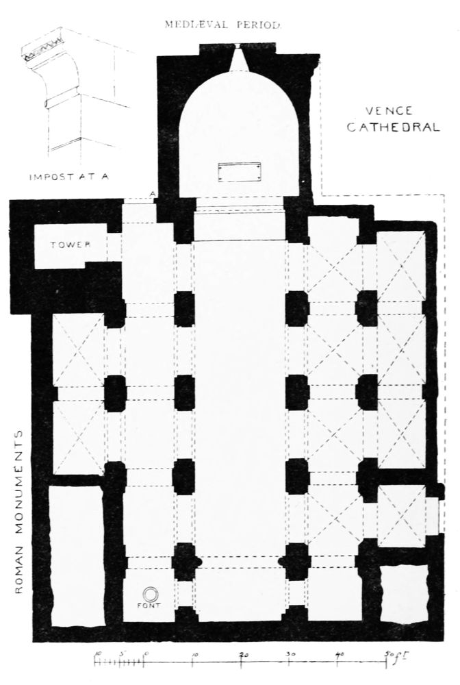Transition from Classic to Mediæval Architecture, 90; principles of Greco-Italian design, trabeate as opposed to the arch, 91; gradual introduction and development of the latter, 92; trabeate features dropped, 93; early Christian architecture a continuation of that of Rome, 94; the basilica, 95; the baptistery, 96; San Vitale, 96; Byzantine edifices, the dome, 97; St Mark’s, Syrian churches, 98; early churches in the West—Romanesque varieties, 99; attempts to vault—San Miniato, 100; Notre Dame du Pré, Le Mans; form of vaulting in Provence, 102; in Aquitaine, 103; St Front, Perigueux, 104; the dome and single nave characteristic of the South, 105; varieties of style, influence of Roman remains, 105; powerful in Provence, 106; shewn in campaniles, baptisteries, and especially sculpture, 107; supposed Byzantine influence—the pointed arch, 107; used for simplicity of construction, 108; Burgundian style, imitative of nature, 109; the severe style of the Cistertians, 110; the second style of Provençal art; the two periods described, 111; growth of lay element, 112; traditional ecclesiastical forms abandoned and new natural forms adopted, 113; Northern Gothic developed, 114; Gothic applicable to all requirements, 115; domestic and castellated Architecture, 116; origin and growth of the latter, 117; peculiarities in the South, 118; recapitulation, 119; place of Provençal Architecture, 120.
