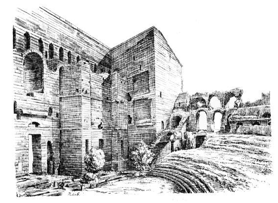 During the second and third centuries, South Gaul gradually became entirely Romanized, and was the favourite province of the Empire, with the seat of the prefect at{10} Trèves. In the first brilliant period of the Empire, her extensive conquests added to her strength, both in supplying men for her armies, and wealth for the embellishment of her cities. Hence the magnificent display of public buildings then erected everywhere throughout the Roman world. But it also tended to her enervation through luxury and superfluity. This gradually encouraged the growing corruption of the Empire, and caused continually fresh demands on the provinces to feed the central craving and consumption—while with luxury the strength of Rome relaxed, and she became unable in return to extend to the provinces the support they required.