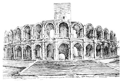The Architecture of Provence naturally divided into a Classic and a Mediæval period—which best considered separately, 32; the {x}Roman period, 33; Paris, Autun, capricious preservation of Classic monuments, 34; Lyons, Vienne, 35; Temple of Augustus and Livia, remains of Forum, 37; the pyramid, 38; Vienne restored, 39; Orange, 40; the theatre, 42; triumphal arch, 45; other triumphal arches at Cavaillon, 47; St Remy, 48; mausoleum at St Remy, 50; Arles, history, 51; amphitheatre, 52; mode of protecting spectators in ditto, 54; obelisk, Place d’Hommes, Tour de la Trouille, 56; Alyscamps, 57; sculpture in museum, 59; Nimes, history, 64; amphitheatre, 65; Maison Carrée, 68; statue of Venus, 71; Nymphæum, 72; Tour Magne, 73; Roman gates, 74; Pont du Gard, 76; the “Camargue” and the “Crau,” 77; St Chamas, Roman bridge at, 77; Vernégue, temple at, 78; paucity of classic remains at Marseilles and Narbonne, 79; Pomponiana, 80; Le Luc, 80; Fréjus, history, 80; gate of Gaul, amphitheatre, theatre, aqueduct, 82; Via Aurelia, 83; aqueduct of Clausonne, Antibes, Vence, 84; Cemenelum, 86; Turbia, 87.