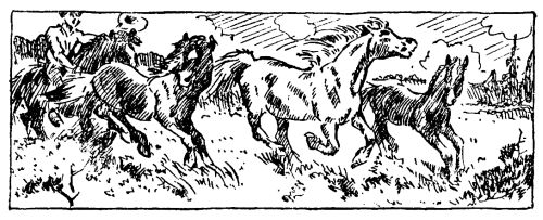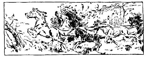 “Look, sonny,” said the horseman, “that was the stallion walking before us up the hill. He has warned his mares and set them all going. How fine they look in a bunch with their varying colours! Seems a pity,” he continued, “that these fine creatures should have to go down into the coal-mines.”