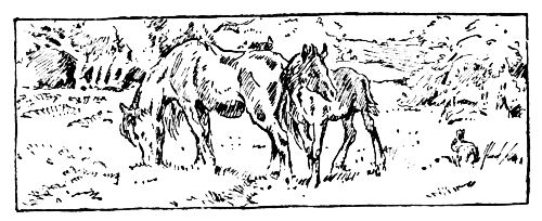 As they passed over the moor they came upon a group of ponies. It was Skewbald’s herd. He was grazing, and as the two men passed within a short distance, he raised his head and looked at them. But, as they were on foot, and seemed to have no ill designs on ponies, he turned again to his own business.