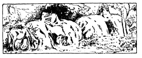 Almost their exact counterpart, even to the beard, had been set down, ages before, in the wall-paintings and drawings scratched on bone of the old Stone Age. These two, one might suppose, were throw-backs to the old forest pony, which was hunted, or possibly domesticated, by the men whose remains were interred in the mounds dotted over the forest. Indeed, close by stood a great tumulus, and some way off was a group of nine mounds, big and little, like parents and children.