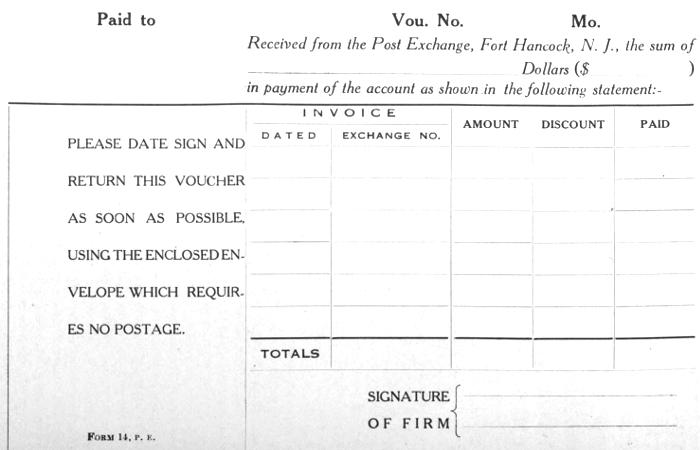 Our Post Exchanges are usually in charge of officers with little or no experience in book-keeping, their assistants are usually enlisted men and not professional clerks and accountants, and there is, at present, no codified or standard system prescribed for handling this business. Some parts of the Post Exchange Regulations have become antiquated through the developments of modern business methods such as the “Voucher Check System”.