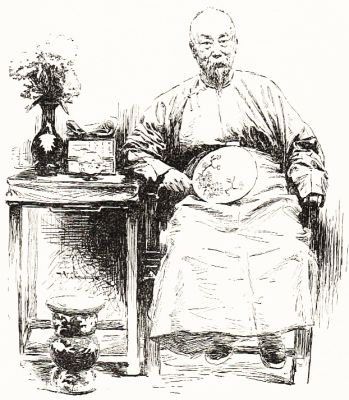 Our visitor's titles bespeak his eminence in his own country. First, he is Viceroy of the province of Chih-li, which includes Peking, the capital, and the whole of northern China. Next, he is the Senior Guardian of the Heir Apparent to the Chinese Throne, a title explaining itself. Lastly, the syllables "Hung-Chang" which are pronounced as part of his name, signify "Grand Secretary"—so that his name, translated into English, would be "Grand Secretary Li." His Three-eyed Peacock Feathers, Yellow Jacket, Third Degree, White Button, Black Feather, and other ornaments, which Europeans have been in the habit of ridiculing, each represents a decoration, or honor conferred for some act of brilliant generalship or successful diplomatic negotiation.