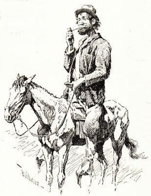 In the mean time Jack had got the grouse ready, and we ate it about as ravenously as the horses did their corn. We had just finished, and were talking about going, when a tall man on a small horse almost covered with saddle rode up, and began to talk cheerfully on various topics. After a while he said,