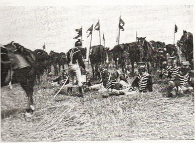 The younger man shakes his head in concurrence with his comrade's views of the situation, but dares not venture a word, for fear he may betray his nervousness in his voice. He knows exactly what is expected of him, and will sacrifice his life without an outward qualm in this his first real duty to his flag.