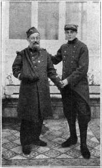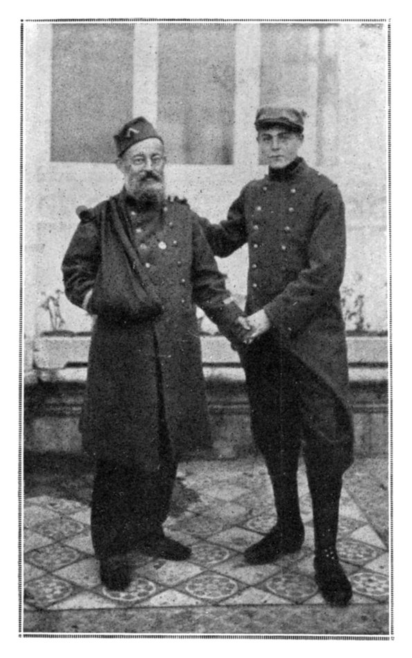 Un jour, enfin, il n’y tint plus et se présenta au bureau de recrutement. On était peu disposé à l’écouter; mais il montra tant d’éloquence qu’on finit par accepter ce vétéran à la barbe plus blanche que grise, au nez orné d’une paire de lunettes.