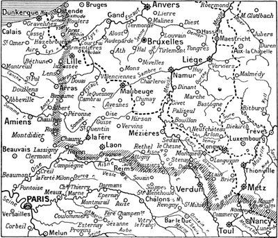 Les combats se sont poursuivis au Sud d’Arras jusqu’à l’Oise. Entre Arras et la Somme, il semble que tout se soit borné à des attaques contre nos positions, suivies de retours offensifs de notre part, nous faisant gagner quelques points retranchés par l’adversaire. Mais plus au Sud, en arrière, à l’Ouest de Roye et de Nesle, des deux côtés du chemin de fer de Tergnier à Amiens, l’ennemi a renouvelé l’effort entrepris depuis tant de semaines pour tâcher d’atteindre la capitale picarde. Il n’y a pas réussi; c’est nous qui, vers le 30 octobre, avons atteint, aux abords immédiats de Chaulnes, le bourg de Lihons, et, plus au Sud, à quelque distance de Roye, le village du Quesnoy-en-Santerre.