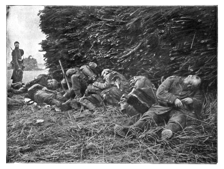 semblent dormir, dans des poses naturelles, au pied d’un tas de bois.