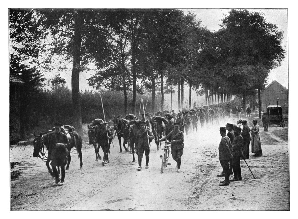 Et ce sont toujours ces mêmes anonymes qui, entre les chevaux des uhlans, ont suivi à pied, ont été conduits hors de la ville nu-tête, au vent du désastre, comme dans les peintures du moyen âge, qui ont été menacés du fusil, de la corde et du revolver, que l’on a mis en joue et que l’on a relâchés... quand on a vu qu’ils n’avaient pas peur.