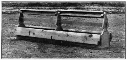 After the age of about 12 weeks, and when feeding is done under shelter, use a flat-bottomed trough from 12 to 18 feet long or several short feeders made with a 1- by 10-inch board as a bottom, 1- by 8-inch boards as sides, and with a guard of 1- by 4-inch center piece topped with a free-turning roller or reel (fig. 14). For outside feeding a similar trough is advisable. It should be divided into two sections each 6 to 9 feet long, set on 2- by 8- or 2- by 10-inch skids covered with 1-inch hexagonal mesh, 16-gage wire or heavy gage 1-inch-mesh hardware cloth, and provided with a gable roof and side boards to protect the feed and the birds from sun, wind, and rain (fig. 15). The troughs can be removed to be used as inside « 33 » feeders and for replenishing the feed. Two 9-foot feeders are sufficient for 150 to 175 birds. Inside feeding is preferred whenever possible to provide it.