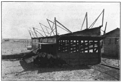 Since hen turkeys fly well, it is sometimes difficult to keep them in their runways. Clipping the large outer feathers (called primaries) of one wing will do much to prevent the turkeys from flying, but it is usually necessary to put a 3- or 4-foot guard made of 1 by 4 or 2 by 2 inch material and lightweight poultry wire around the edge of the roof of the roosting shelters, on gates, and on the fences themselves for 2 or 3 rods out from the buildings. Whenever practicable, these "antiflies" should be slanted in toward the yard (figs. 16 and 20). Clipping the wings of the toms is undesirable and is usually unnecessary when antiflies are properly constructed.