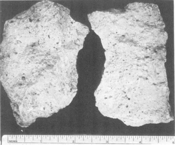 A coarse-grained limestone effervescing in dilute muriatic acid. (This photograph and other close-up views taken by J. F. Barham and Allen Barnes, University photographers.)