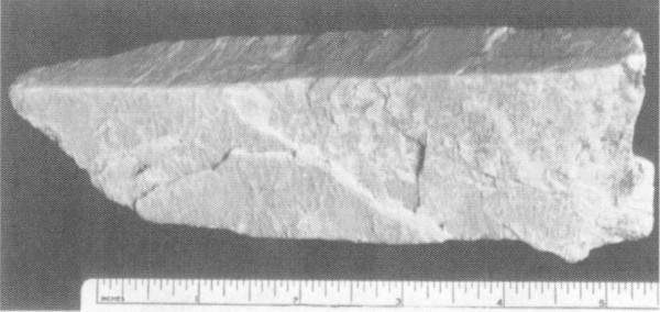 Arrow heads, scrapers, rock knives and saws which were left by the Indians who formerly lived in Missouri may be found in moderate abundance in many parts of the state. Usually these artifacts are chert in its various colors, white, gray, mottled, reddish, or black (flint). See the discussion of chert on page 34. Chert, because of its conchoidal fracture, lack of cleavage, resistance to chemical weathering, and superior hardness, is an exceptionally useful rock for making tools and weapons.