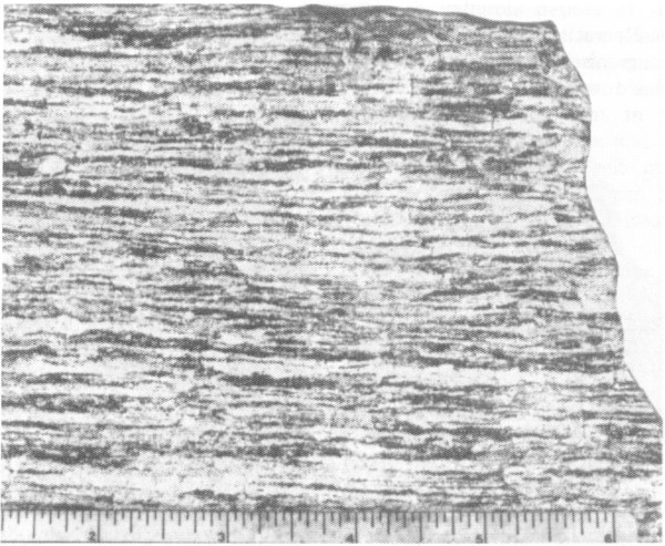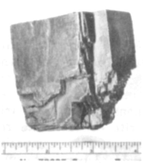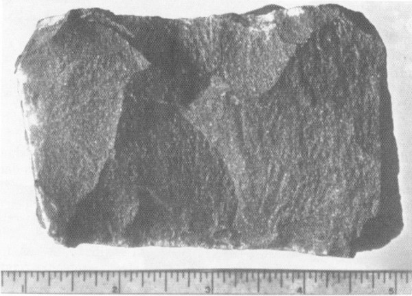 Hand specimen of shale shown in preceding picture. Note the characteristic thin layering or lamination.