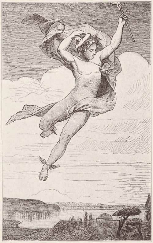 In the meanwhile Hermes had been hospitably entertained, for even the gods regale one another, though they do not eat mortal food. Their food is called ambrosia and they drink a divine liquid which the poets call nectar. After feasting, Hermes repeated the message and left the island.
