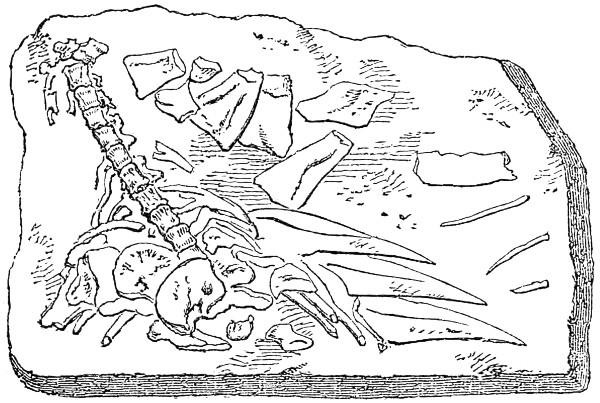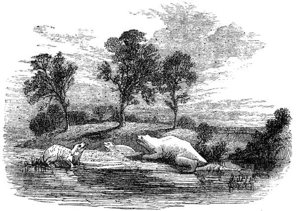 The dinner consisted of three courses; first, the promulsis, or gustatio, chiefly stimulants to the appetite; the second contained an immense variety of dishes; the principal dish was called cœnæ caput or pompa. Among them chief delicacies were the pheasant, thrush, liver of a capon steeped in milk, and fig-eaters dressed with pepper. Hortensius the orator first introduced the peacock. The favourite fish were the turbot and mullet: eels, also, stewed with prawns. Pork, boar’s-flesh, and venison, were the most highly esteemed meats. The carving was performed to the sound of music, by an especial servant called the scissor, or carptor. The third course was the bellaria, or dessert, which consisted of uncooked fruits, such as occupy the centre of the wall before us. In addition to the fruits of the dessert great varieties of pastry were introduced, modelled in imitation of other articles of food; showers of perfume and occasional jets d’eau contributed to the luxury of the scene, but these were extravagancies, probably confined to the most wealthy citizens of Rome. The pages of Horace, Juvenal, Petronius, Martial, Athenæus, Suetonius, Aulus Gellius, and Macrobius, afford curious detail of these entertainments, from which we may easily comprehend the enormous sums they are said to have cost. An extraordinary feast is represented, in a painting, at Pompeii, described by Mr. Donaldson. The table is set out with every requisite for a grand dinner. In the centre is a large dish containing four peacocks, their tails forming a magnificent dome. Around are lobsters, one of which holds in his claws a blue egg, a second an oyster, and another a little basket full of[V-64] grasshoppers. Four dishes of fish decorate the bottom, above which are several partridges, hares, and squirrels, each holding its head between its paws. These are surrounded by something resembling a German sausage, then a row of yolks of eggs, then a row of peaches, small melons and cherries; lastly, a row of different vegetables, and the whole seems to be covered by a green coloured sauce.
