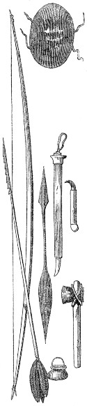 The guests, preparatory to reclining on the couches, took off their shoes, and were then provided with napkins, generally fringed, and often richly embroidered. Water was poured over their hands into basins of precious metal, a process repeated many times during an entertainment, and doubtless very necessary, as the fingers were much used in the course of eating. They had knives and spoons, but forks are entirely a modern invention and their mode of eating was very similar to that practised in oriental countries, where the right hand alone is made use of. Women, when admitted to the entertainment, always sat upon the couches. The same custom may be observed on the painted vases and bas-reliefs of the Greeks down to a late time.