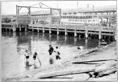 Twelfth Avenue adjoins the Hudson River, losing itself here and there in wharves and pier-heads. Two of the piers belong to the city, one being devoted to the disposal of garbage, the other to recreation. Factories and an occasional saloon are on the inland side, but there are almost no shacks or tenements.