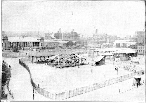 Eleventh Avenue is much more dirty and disconsolate. In its dingy tenements live some of the poorest and most degraded families of this district. On the west side of the avenue and lining the cross streets are machine shops, gas tanks, abattoirs, breweries, warehouses, piano factories, and coal and lumber yards 4 whose barges cluster around the nearby piers. Sixty years ago this avenue, in contrast to the fair farm land upon which the rest of the district grew up, was a stretch of barren and rocky shore, ending at Forty-second Street in the flat unhealthy desolation of the Great Kill Swamp. Land in such a deserted neighborhood was cheap and little sought for, and permission to use it was readily given to the Hudson River Railroad.6 Today the franchise, still continued under its old conditions, is an anomaly. All day and night, to and from the Central’s yard at Thirtieth Street, long freight trains pass hourly through the heterogeneous mass of trucks, pedestrians, and playing children; and though they now go slowly and a flagman stands at every corner, “Death Avenue” undoubtedly deserves its name.