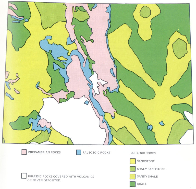 In the generalized geologic map of Colorado which accompanies Chapter II, rocks are identified by the era in which they were formed. A more detailed geologic map can be obtained from the U.S. Geologic Survey map distribution center in the Federal Building, Denver.