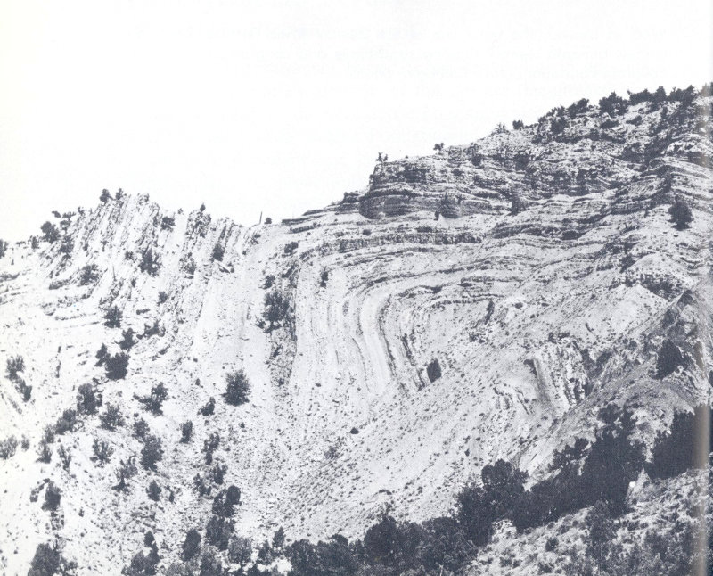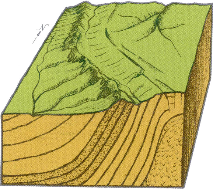 Monocline. A steplike fold in otherwise horizontal or gently dipping rock layers.