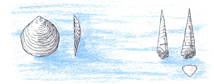 Fusulinid. One-celled marine animals (forams) with shells which look like a grain of wheat in shape and size, frequently abundant in Colorado Pennsylvanian rocks.