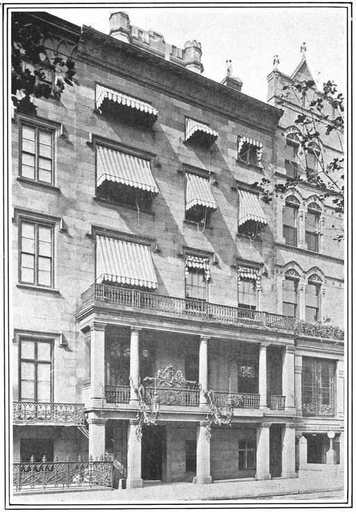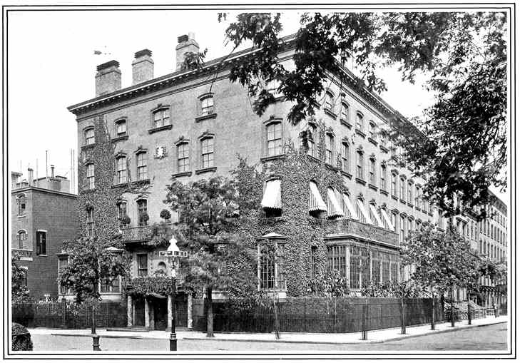 The older resident can recall Union Square when the buildings were nearly all private residences, conspicuous among which were the Parish house on the north side and the Penniman (later the Maison Dorée) on the south. He can recall the stately appearance of Fourteenth Street westward of Union Square: the Haight residence on the corner of Fifth Avenue and Fifteenth Street, with its large winter garden;4 the brownstone house of Colonel Herman Thorn in Sixteenth Street, west of the avenue, standing in its wide grounds (now nearly filled by the New York Hospital); the residence of Mr. and Mrs. August Belmont (so long leaders in society), on the avenue, at the corner of Eighteenth Street, extending with its picture gallery a long distance on the street; the Stuart residence, which shared the block above Twentieth Street with a church; and then the Union Club house at Twenty-first Street. Perhaps of all the landmarks taken down during the time of the present generation, none was so well known as the Goelet house at Broadway and Nineteenth Street, with the grounds extending eastward toward Fourth Avenue. Thousands of people passed every day in the short stretch between the two squares. Mr. Peter Goelet’s penchant for rare and beautiful birds was a never-ending delight to every passing child and adult, and13 a number were always standing gazing past the iron railing. Peacocks white and blue, Chinese golden pheasants, and many other varieties found a comfortable home in the grounds.