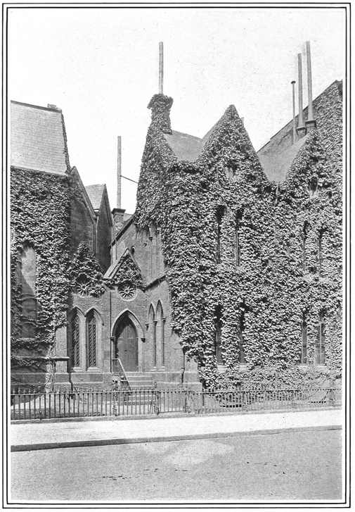 As regards the matter of repose, it may be said that twenty-five years ago the palm would clearly have been given to Lafayette Place. This short street also had a character of its own. From the Langdon house on the east side near Astor Place to old St. Bartholomew’s14 Church at Great Jones Street, and from the Langdon (Wilks) house on the west side to the Schermerhorn house opposite the church, almost every building had its individuality. The street was marred by three or four ancient buildings, which for some reason were not removed, such as the stable between the Langdon house and the Astor Library, once the favorite Riding Academy. The Library still (1906) stands, as does a part of the old Colonnade, but an earthquake could hardly have wrought greater changes than has the march of trade.