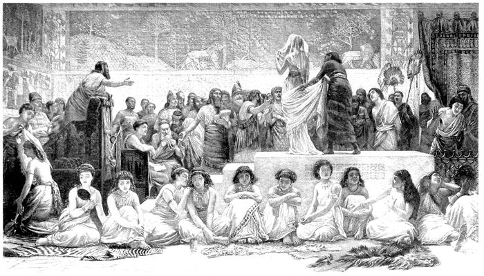 As the cultivated nations of Antiquity sprang from inferior tribes, it is only natural that in their social life many of the habits and customs of prehistorical times survived. Nowhere was this fact more evident than in the status of women. Everywhere we find a strange mixture of the rude conceptions of the dim past and promising prospects for a brighter future. In many places women were still regarded as inferior creatures, subjected to the will of men and with no rights whatever over their own persons. We also note that polygamy, barter, rape, slavery and hierarchical prostitution 30still flourish in all kinds of forms and disguises. But at the same time we are surprised to see that among certain nations the members of the fair sex enjoy already the same respect and almost a similar amount of rights and liberty, as our women possess to-day.