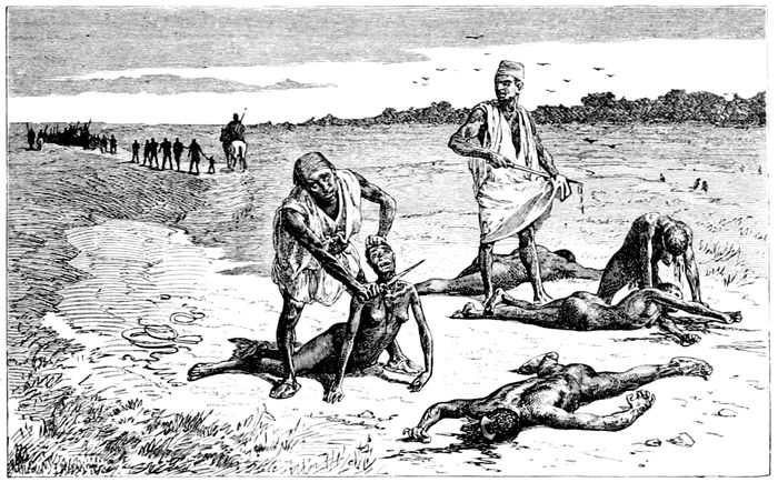 Imagine a peaceful village, approached stealthily in the night by cruel enemies, who surround it and then set fire to the huts. As the inhabitants rush out in terror, those who resist capture are killed, and those who have escaped the blessing of immediate death are fettered and marched off. Imagine long columns of such unfortunate and often severely wounded men, women and children chained together and driven by ruthless brutes through pathless jungles and arid deserts, to far away markets. No matter how hot the sun burns down, they must move on. Woe to those who break down! They are left where they have dropped, to perish of hunger and thirst, or to be torn by wild beasts. Or, as a warning to the others, they are butchered in cold blood by their drivers. For those who reach their destination, where they are traded like cattle, an existence is waiting that will have fewer moments of joy than there are oases in an endless desert.