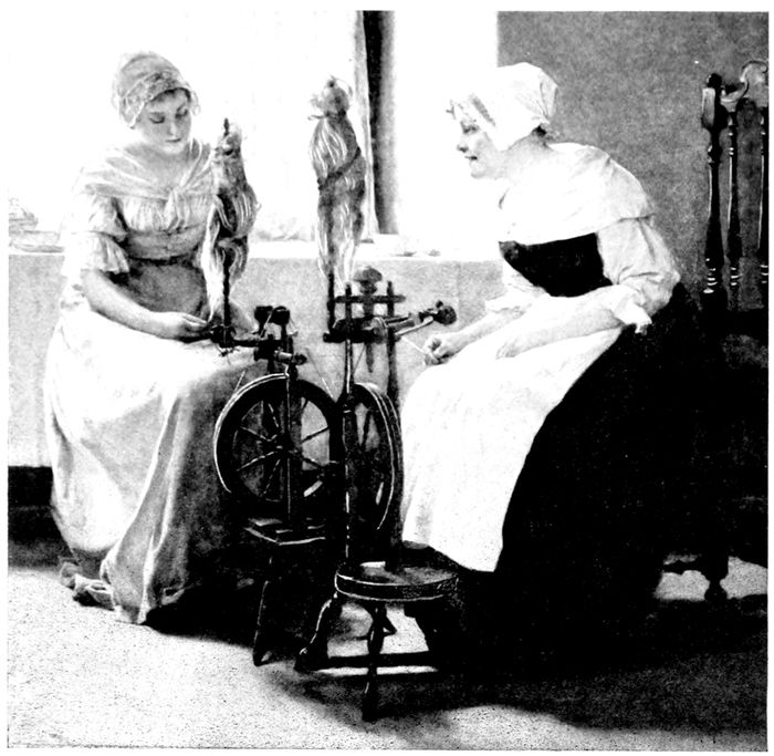 But the despised work of the weaker sex has proven of far greater value to the progress of the human race than all heroic acts ever accomplished by fighting men. To woman’s ingenuity we owe our comfortable homes. Women kept the warming hearth-fire burning, prepared the meals, watched faithfully over the children and made the clothes that gave protection against rain and cold. To women’s inventive sense we owe also our most important industries: agriculture, weaving, pottery, tannery, basketry, dyeing, brewing, and many other peaceful arts.—