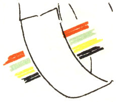 Standard and wide gimps have a seam on one face. Always start braiding with this seam next to the core and be careful at the edge of the braid to fold each strand so that the seam remains inside or on the back of the work. Titan lacing is seamless, and therefore can be used with either surface on the outside of the braid. A well-made article, however, should have no twisted strands, whether made of standard gimp, or of seamless Titan lacing.