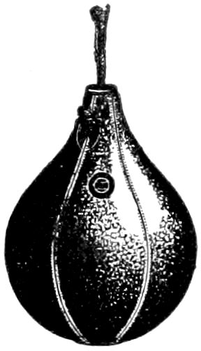 We are making all our double end bags with one-piece top and substantial leather hop. Really the strongest construction we know of. The bottom loop is also very strongly made. Each bag complete in box, with bladder, lace, rubber cord for floor, and rope for ceiling attachment.