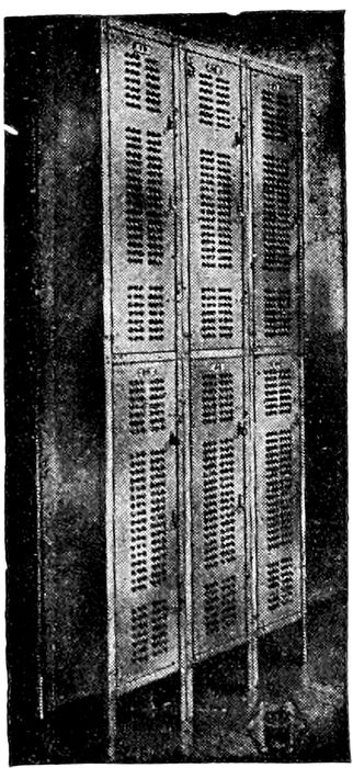 Wooden lockers are objectionable, because they attract vermin, absorb odors, can be easily broken into, and are dangerous on account of fire.