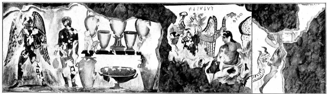 The following sketch is based upon investigations made in the Etruscan Tombs at Corneto and Chiusi, and on comparison of the original wall-paintings with the facsimiles and drawings made from them and preserved in the Helbig Museum in the Ny Carlsberg Glyptotek. It was originally published in Danish, in 1919, as a guide to students in that Department.