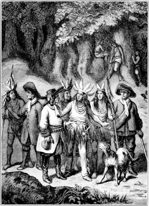 They willingly obeyed the summons of the “great Onas,” as they called the white chief who had completely won their hearts, while the distant tribes who had never seen Penn in person were most curious to behold this paleface of whom they had heard so much and who must be so different from any other of whom they had ever heard. They arrived in bands, in their picturesque garb, the skin of some animal or a handwoven blanket wrapped about the upper part of their bodies, which were marked with strange signs and painted in the most brilliant colors, their feet enclosed in leather moccasins, making possible a light and perfectly noiseless tread, their heads adorned with the huge war bonnets of many-colored feathers. All the great chiefs were present, among them the wise old Tamemund, most distinguished of all. Penn, now in the prime of manhood, was handsomely dressed in European fashion to receive his Indian friends. The long coat with its rows of shining buttons and lace ruffles falling from the wrists fitted smoothly over his tall, well-built frame and half covered the slashed knee breeches. He wore, according to the custom of the time, a long curled wig on which rested a plain beaver hat. As he stood there calm and dignified, as became a great leader, surrounded by a few of his closest friends, among whom was Colonel Markham, already known to most of the Indians, the kindness and benevolence that shone in his dark eyes could not but win the confidence of these simple children of the forest.