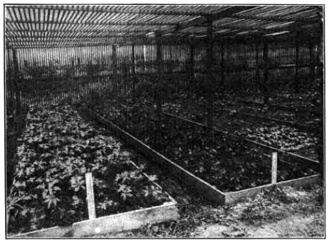 Sowing the seed.—A relatively small number of medicinal plants can be satisfactorily grown from seed sown in the field. In many cases this method is quite uncertain and with some plants wholly inadvisable. In order to insure a good stand of thrifty plants it is frequently necessary to make the sowings in a greenhouse, hotbed, or coldframe and at a suitable time transplant the seedlings to the field. Much information on seed germination, hotbeds, and coldframes can be gained by consulting Farmers' Bulletins 934, 937, and 1044, « 7 » entitled, respectively, "Home Gardening in the South," "The Farm Garden, in the North," and "The City Home Garden."[1]