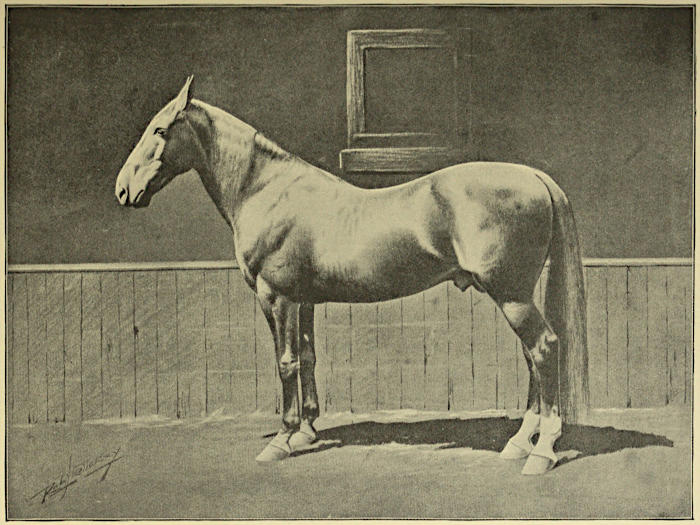 John H. Wallace was born August 16, 1823, and reared on a farm in Allegheny County, Pennsylvania. As a boy he evinced no particular liking for farm work, but had a great fondness for reading. He was educated chiefly at the Frankfort Springs Academy, where he was prepared to enter the junior class at college. There occurred a little incident at this time that illustrates how seemingly slight a thing may change the current of a life. The then member of Congress for that district, Mr. Dickey, a scholarly man, advised Professor Nicholson, of the Academy, that if he had a young man in his institution whom he could recommend, he (Mr. Dickey) would appoint him a cadet to West Point. Mr. Wallace was selected, provided his father’s consent was forthcoming. When Mr. Wallace, Sr., was approached on the subject his reply was,[548] “John, I think there is some better employment in the world for you than studying the most approved methods of killing men”—and that ended the West Point incident. Young Mr. Wallace, about this time, became alarmed, however, at his then persistently delicate health, and decided to seek an outdoor life rather than one of study. In 1845 he married Miss Ellen Ewing (who died in 1891), of Fayette County, Pennsylvania, and settled on a farm at Muscatine, Iowa. Iowa was then a new country, and Mr. Wallace did much in the way of organizing the industrial and educational interests of the State. There, as related below, he began work in the line in which he became famous. With an invalid wife he returned to Allegheny in 1872; and in 1875 in company with the late Benjamin Singerly, of Pittsburg, started Wallace’s Monthly at New York, which has been his home ever since. Mr. Wallace in 1893 married Miss Ellen Wallace Veech, a niece of the first Mrs. Wallace; and since his retirement from active business he has spent his time, at home and abroad, chiefly in prosecuting investigations into the horse history of the remote periods, the results of which are seen in this, his crowning life-work.